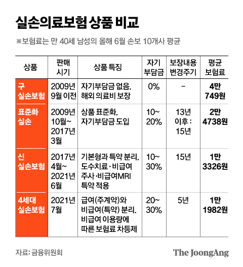 - 세대별 보험료 격차: '1세대 실손보험'은 보장 범위가 넓고 자기부담금이 낮지만, 그만큼 보험료 인상 폭이 큽니다. 반면 최근 출시된 '4세대 실손보험'은 보장 범위를 줄이고 자기부담금을 높이는 대신 보험료를 낮춰, 가입자 간의 형평성을 맞추려 노력하고 있습니다.